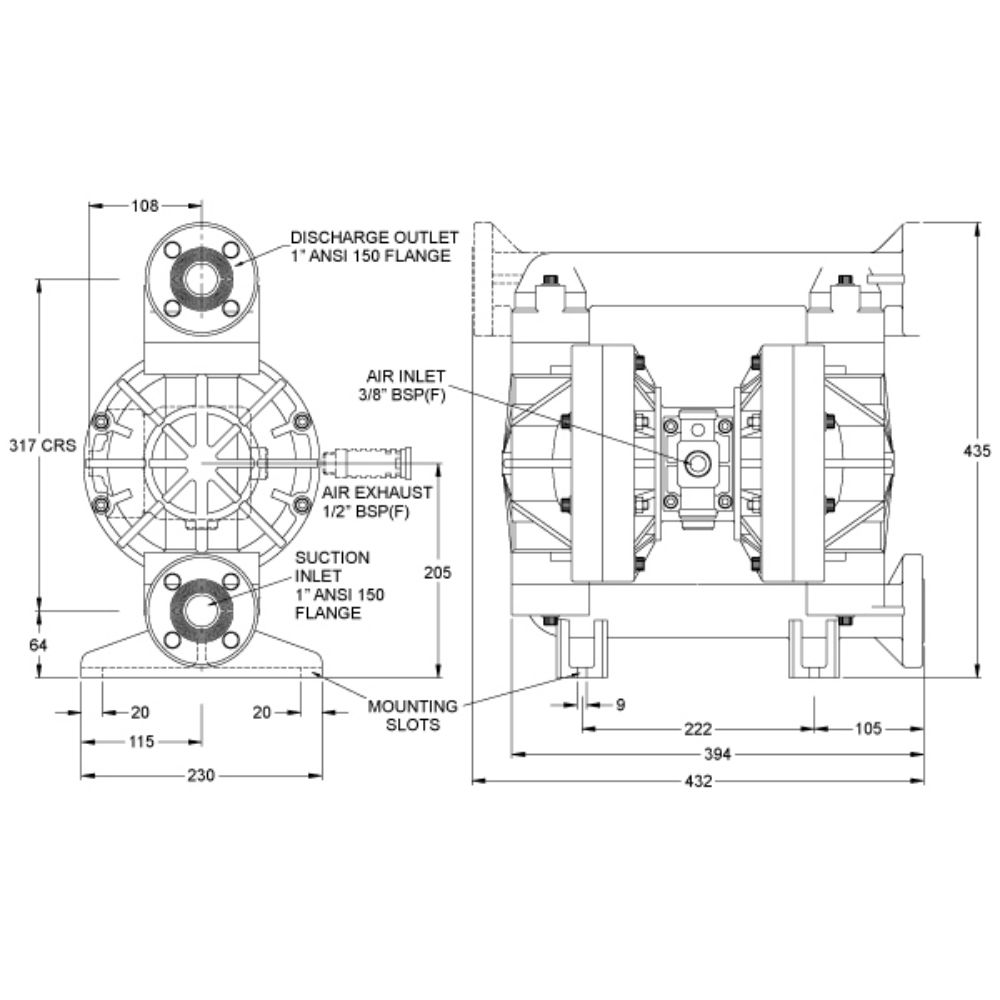 - Fluid Inlet / Outlet 1″ ANSI #150 Flanged RF