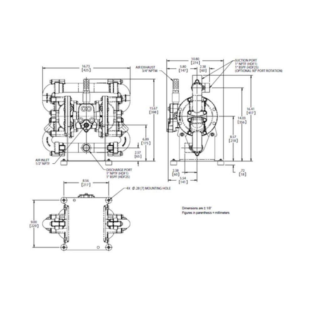 - Fluid Inlet / Outlet 1″ BSP Tapered / NPT